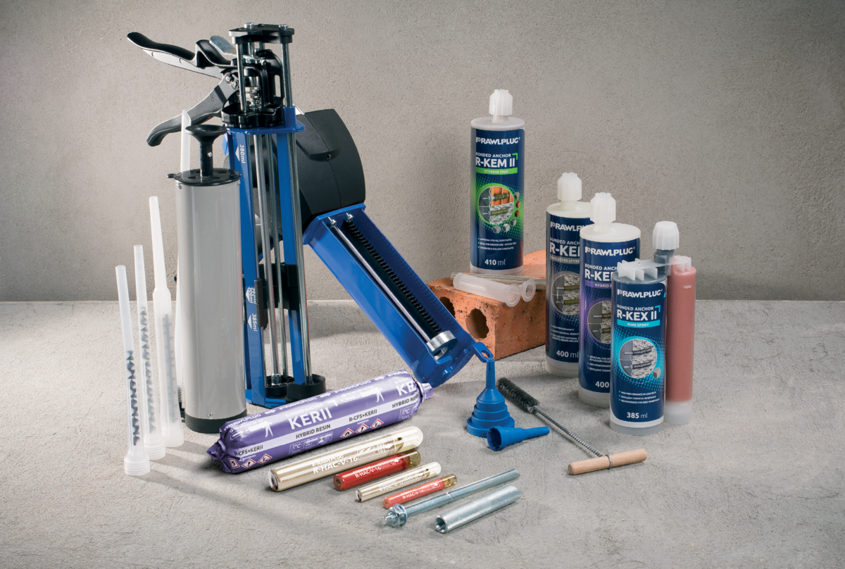 Bendrovė rekomenduoja naudoti universalų R-GUN-MULTI spaudimo pistoletą, tinkantį visų dydžių kasetėms. Kiekvienoje dervos pakuotėje pridedamas maišymo antgalis, kuris užtikrina sklandų ir tolygų klijuojamų inkarų montavimą.