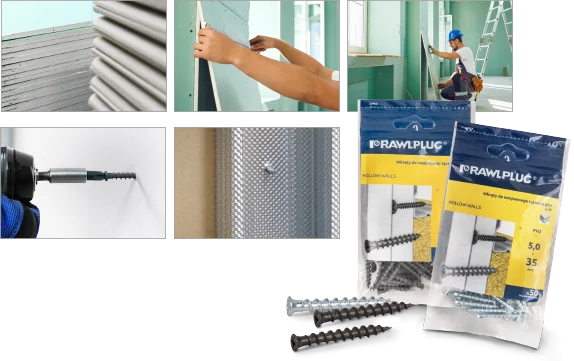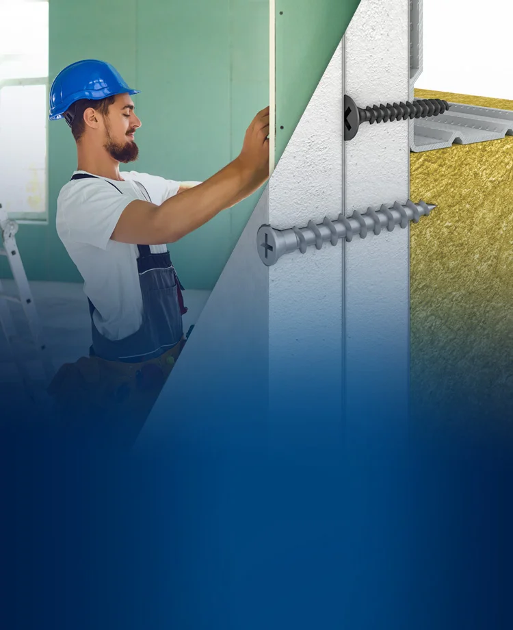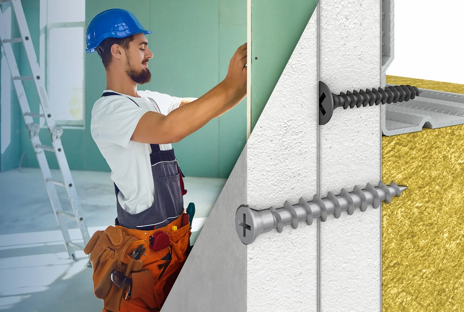 Dėl paprasto montavimo ir universalių gipskartonio varžtų savybių galite sutrumpinti montavimo laiką.