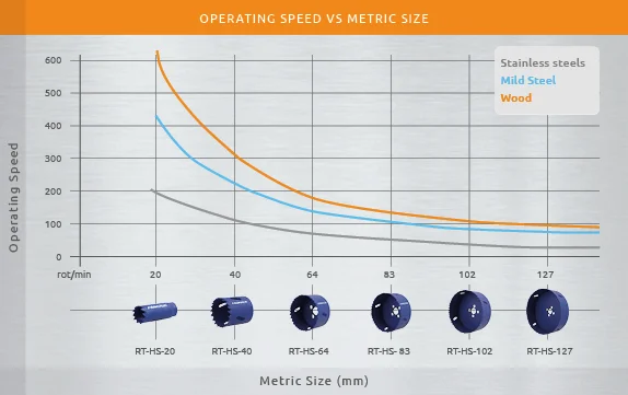 Platus pritaikymas: Norėdami pasirinkti tinkamą karūnos apsisukimų greitį pagal medžiagą,
